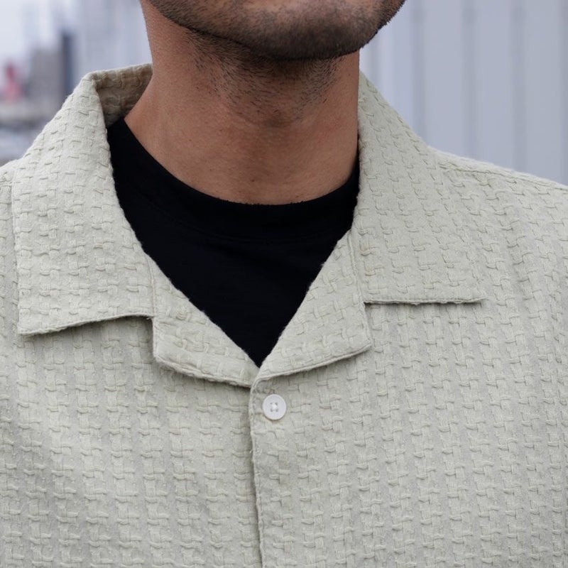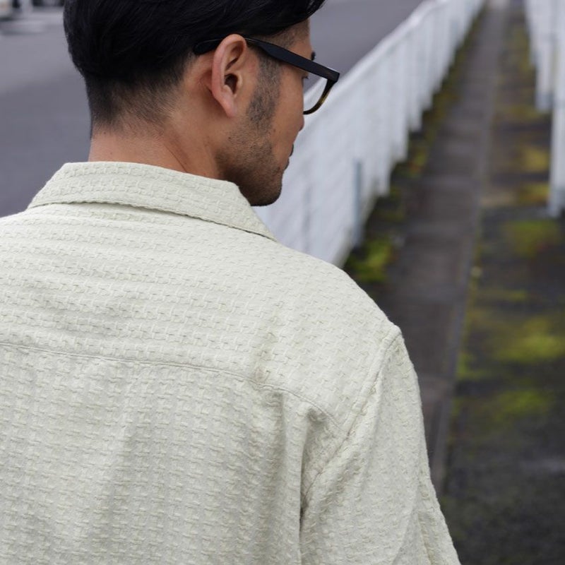 ふんわりとしたインド製コットンをふんだんに使用し、ニットのような優しい肌触りで着心地抜群の半袖シャツ。