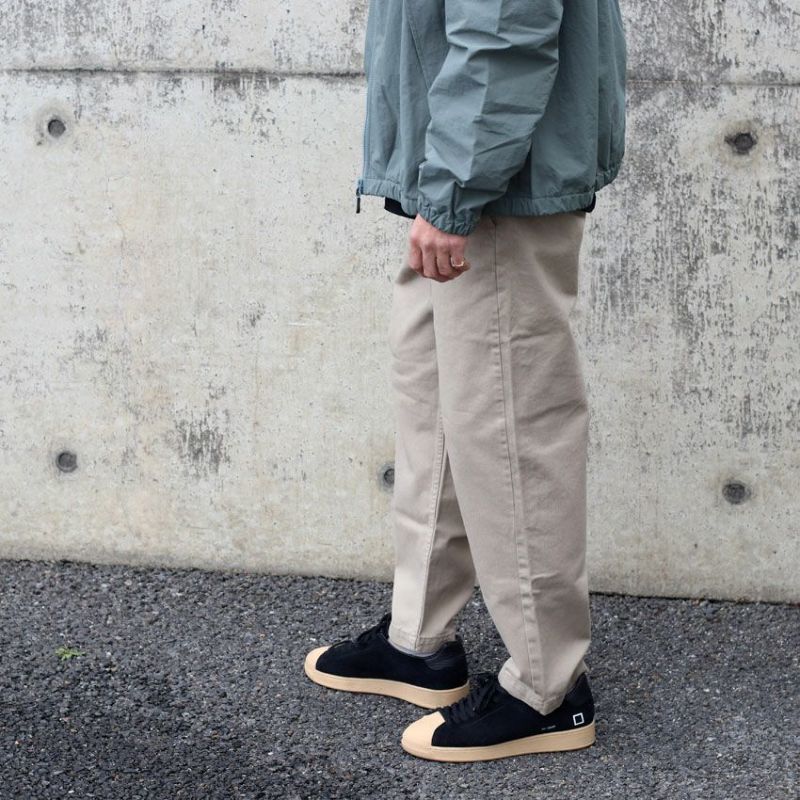 シルエットはワイドからやや強めのテーパードをかけ、丈感はジャストレングス。