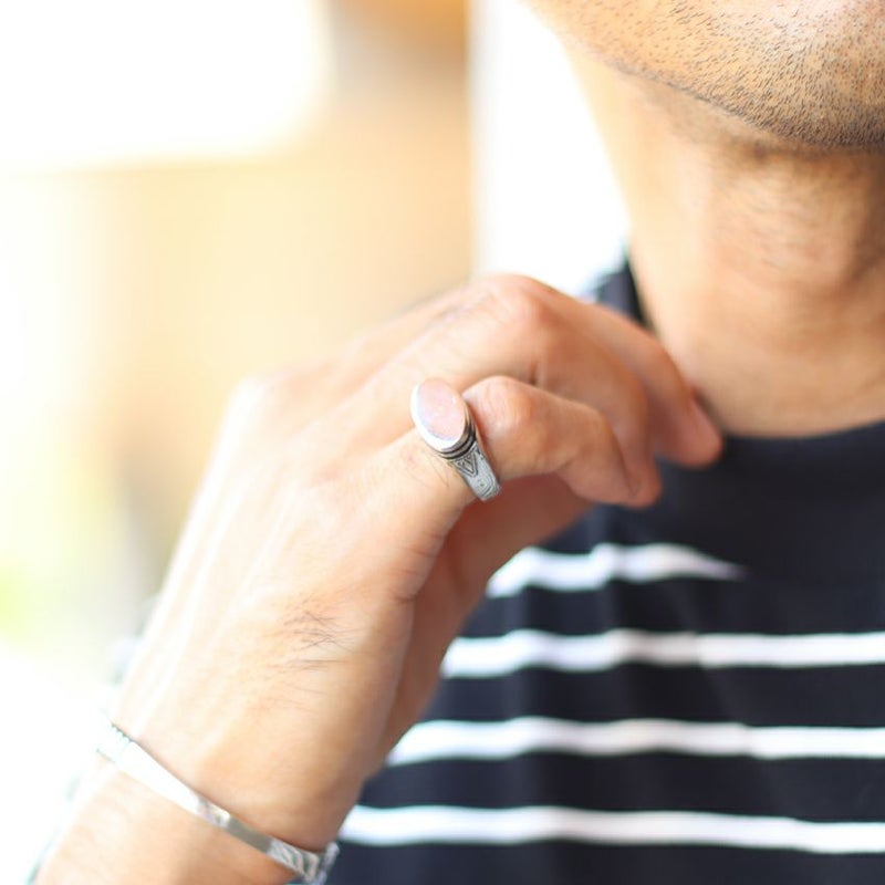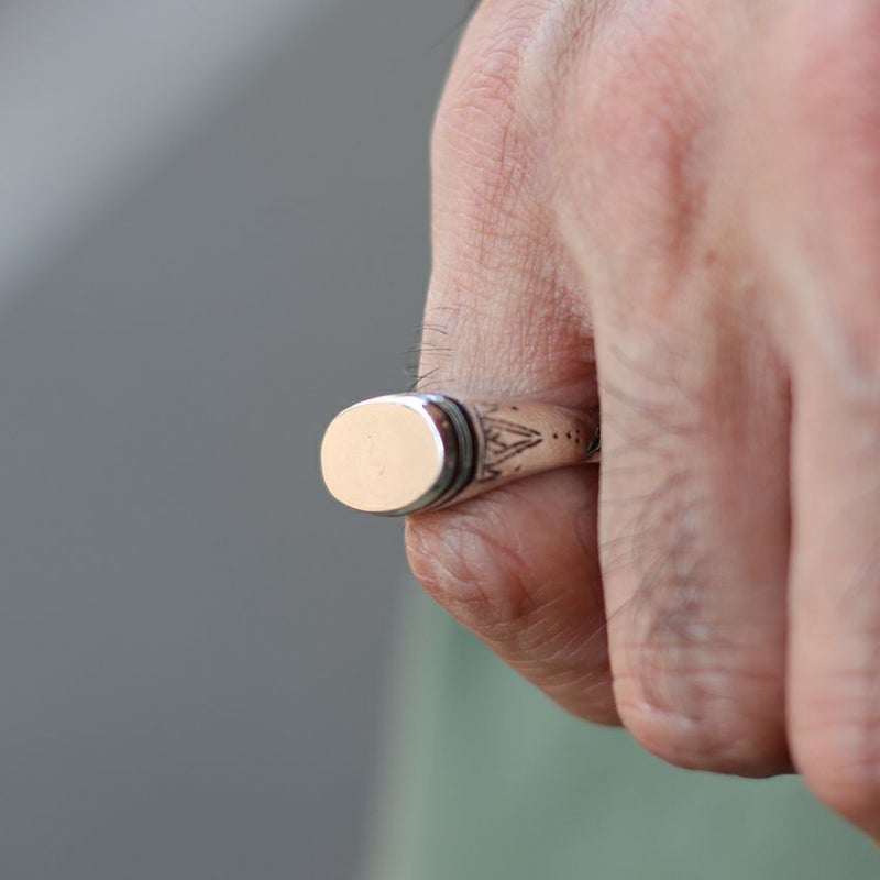 北アフリカの先住民族の言語で"楕円形"を意味するモチーフ「Zezi Tissght/ゼジィ ティサット」のシグネットリングです。