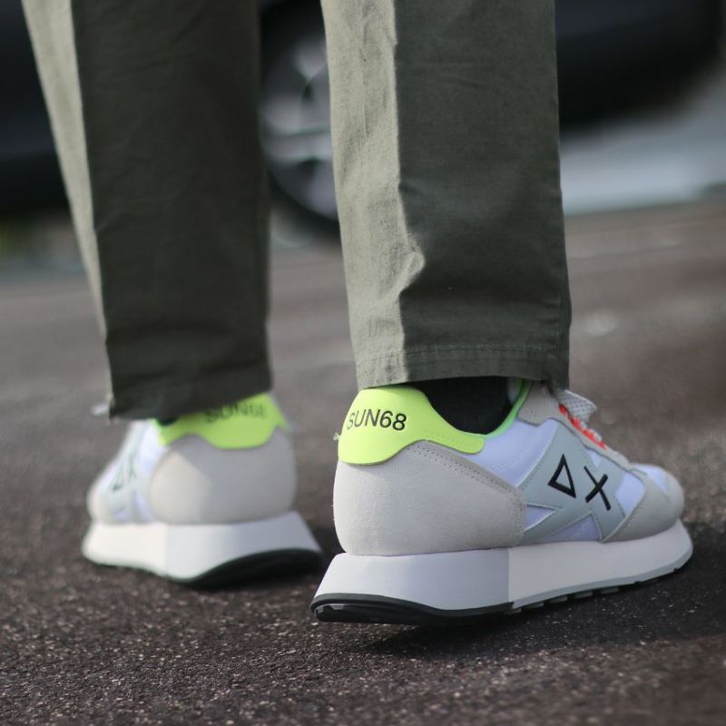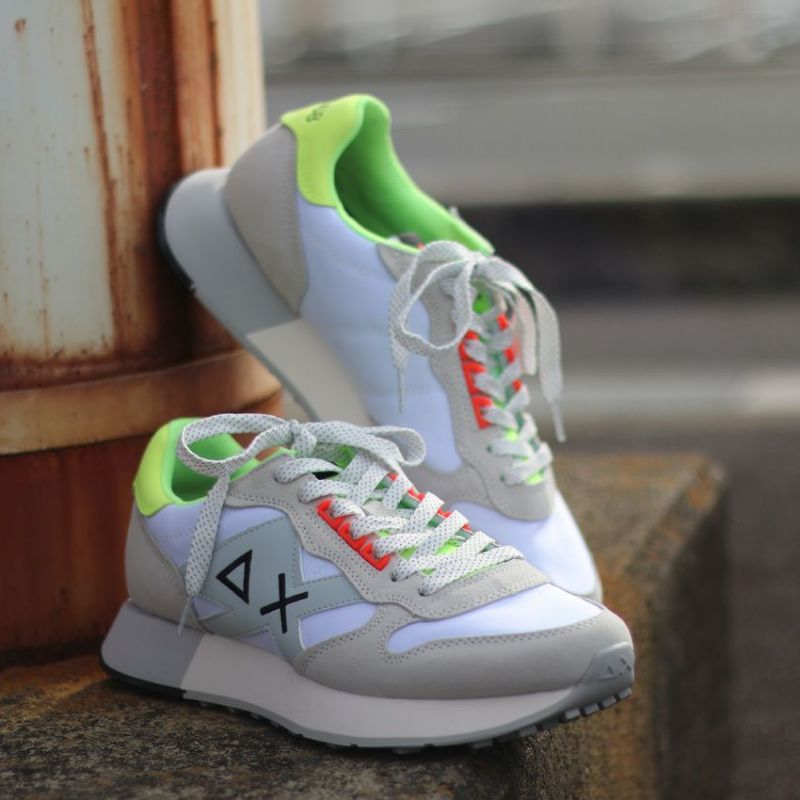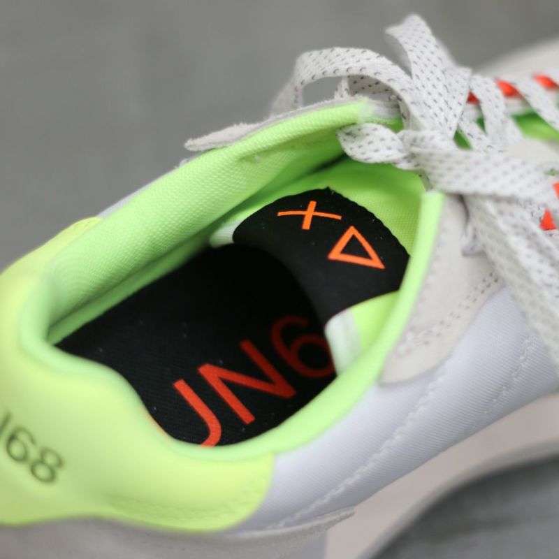 また、部分的にあしらわれた蛍光色の切り替えが目を惹く一足に仕上がっています。