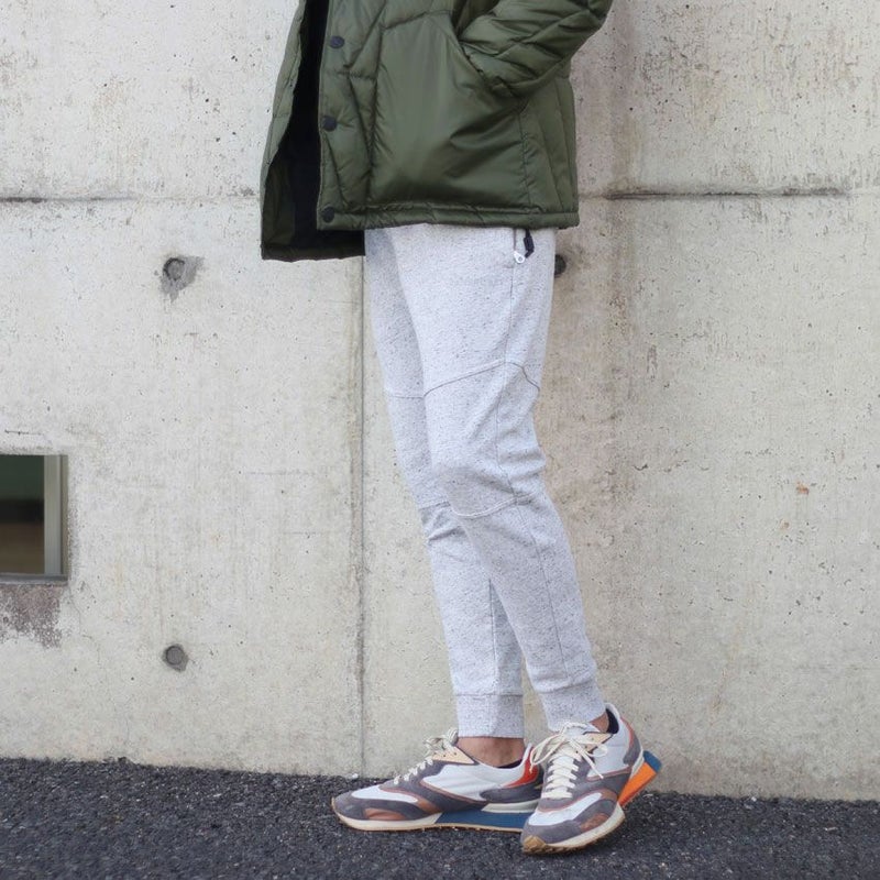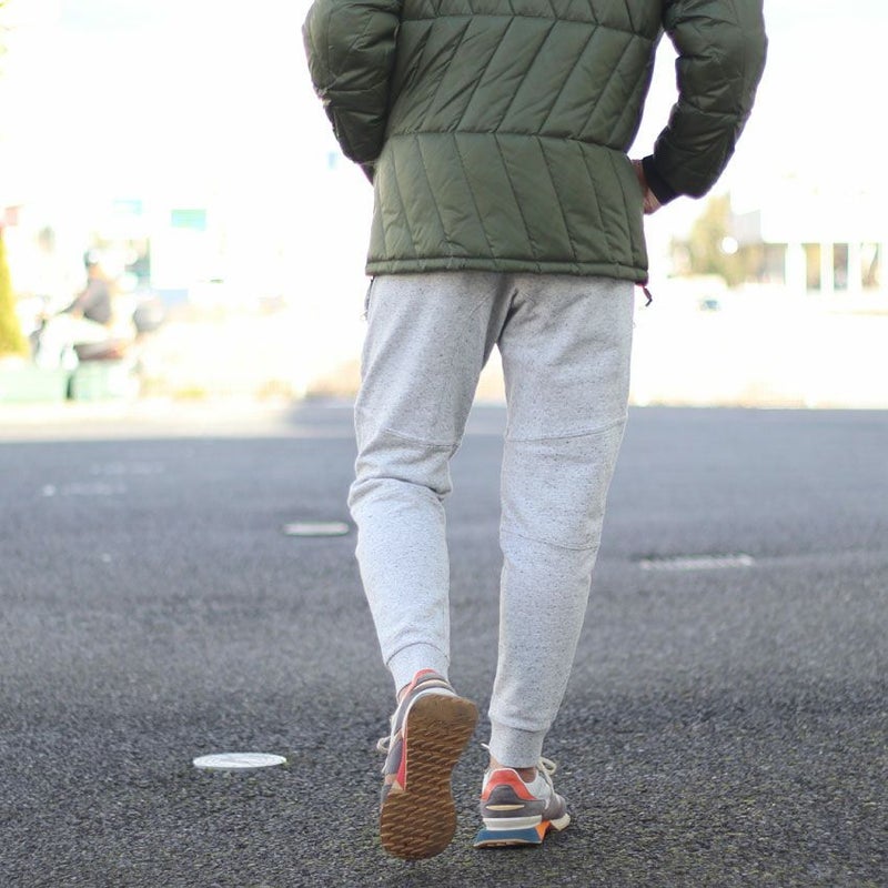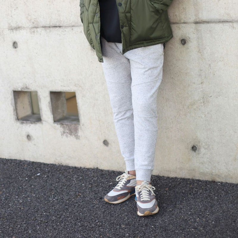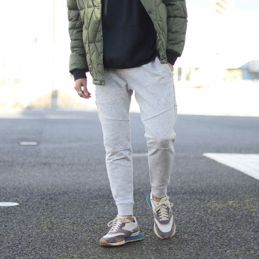 カジュアルなスウェットながら大人らしい落ち着きを演出するスリム目名テーパードシルエット。