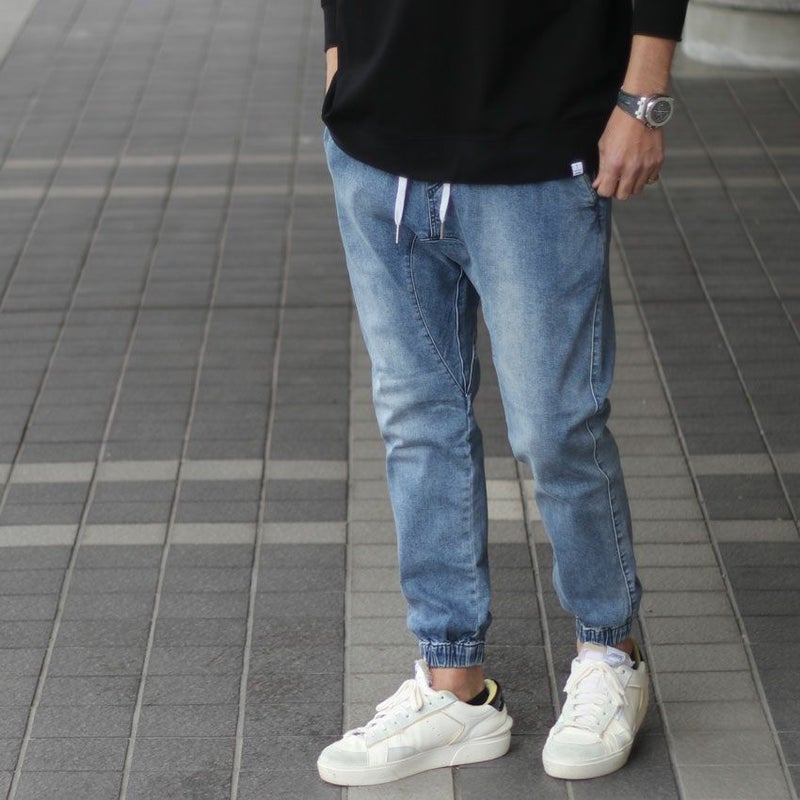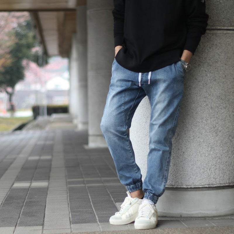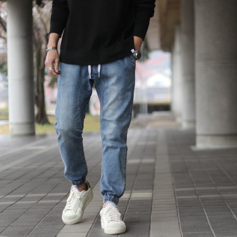 大人ストリートスタイルに最適な人気のデニムジョガーパンツ。