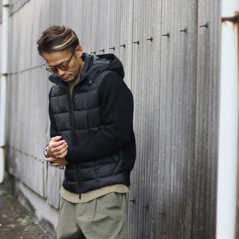 中綿入りのボディーとニットを組み合わせたコンビネーション。