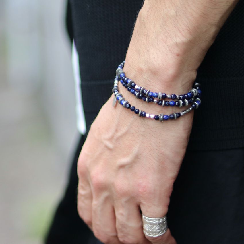 ランダムカットのラピスラズリがキラキラ反射し、メンズの夏コーデにアクセントを加える一本となっております。