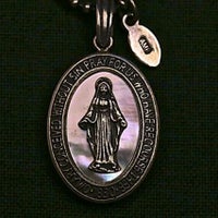 白蝶貝を削り出しその上にマリアをセッティングしたネックレス。