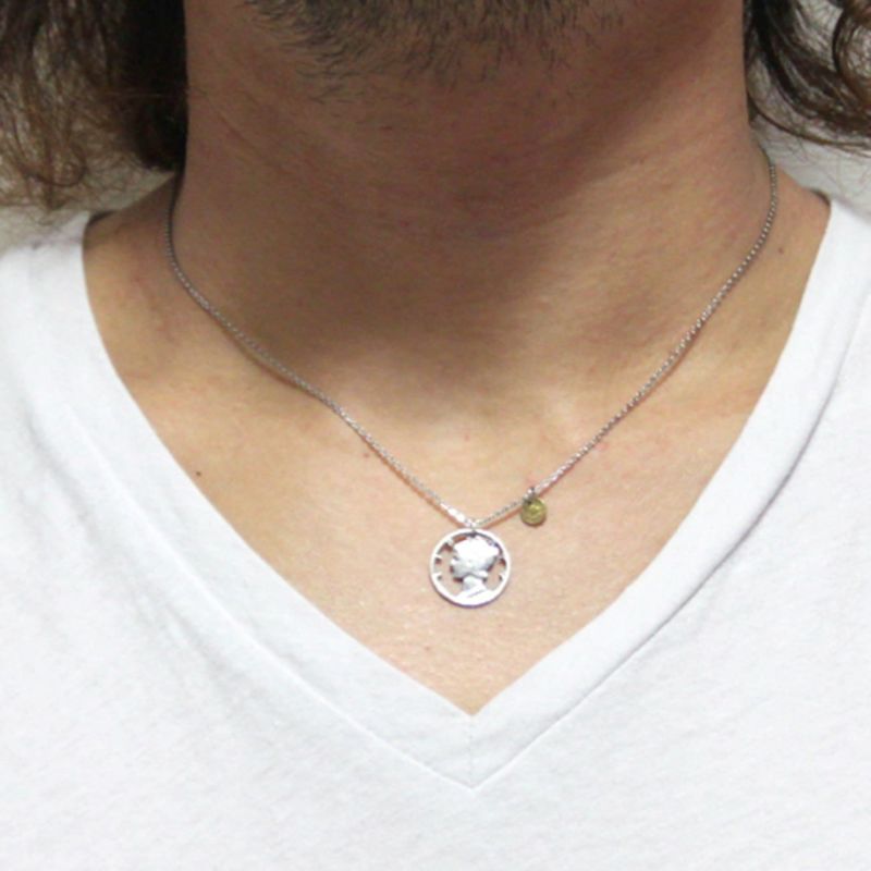 アメリカ合衆国のコインの中で最も美しいとされるウィングド リバティ ヘッド コイン(マーキュリー ダイム)をハンドカットで削りだしたコインネックレスが入荷しました