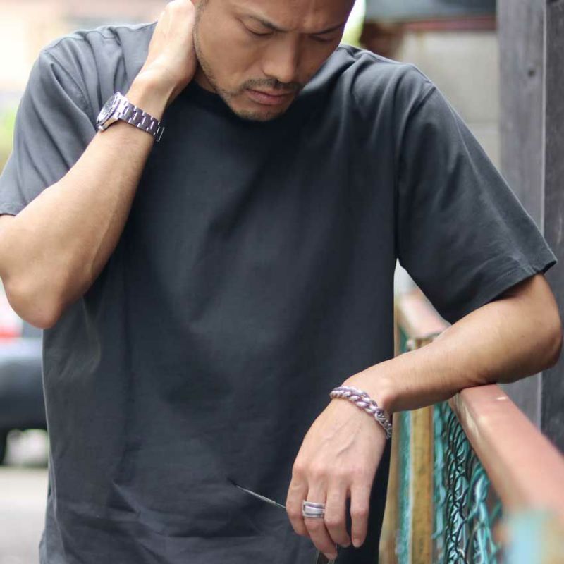 天然石でもゴールドでもコードでもないとブレスレットにお悩みのアラサーアラフォー世代におすすめしたい、渋さが光る一本です。