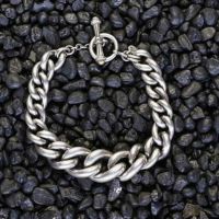 燻され磨かれたこのグラデーションキャバルリーシルバーチェーンブレスレットは