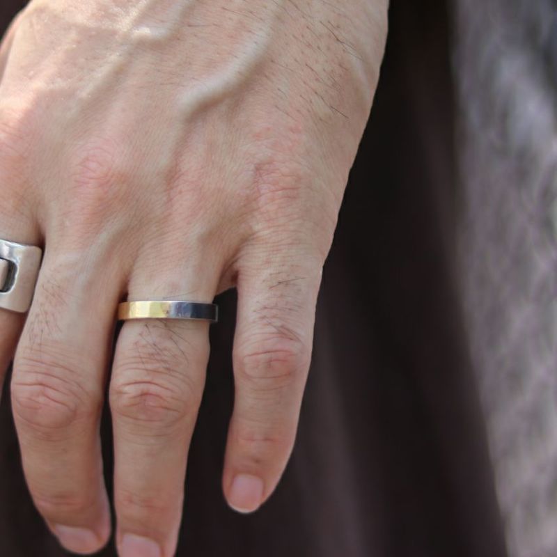 amp japan/アンプジャパン Side Hammered Narrow RG HYO-253 国産 日本製 芸能人 着用 愛用 アンティーク フォーク 食器 真鍮 リング