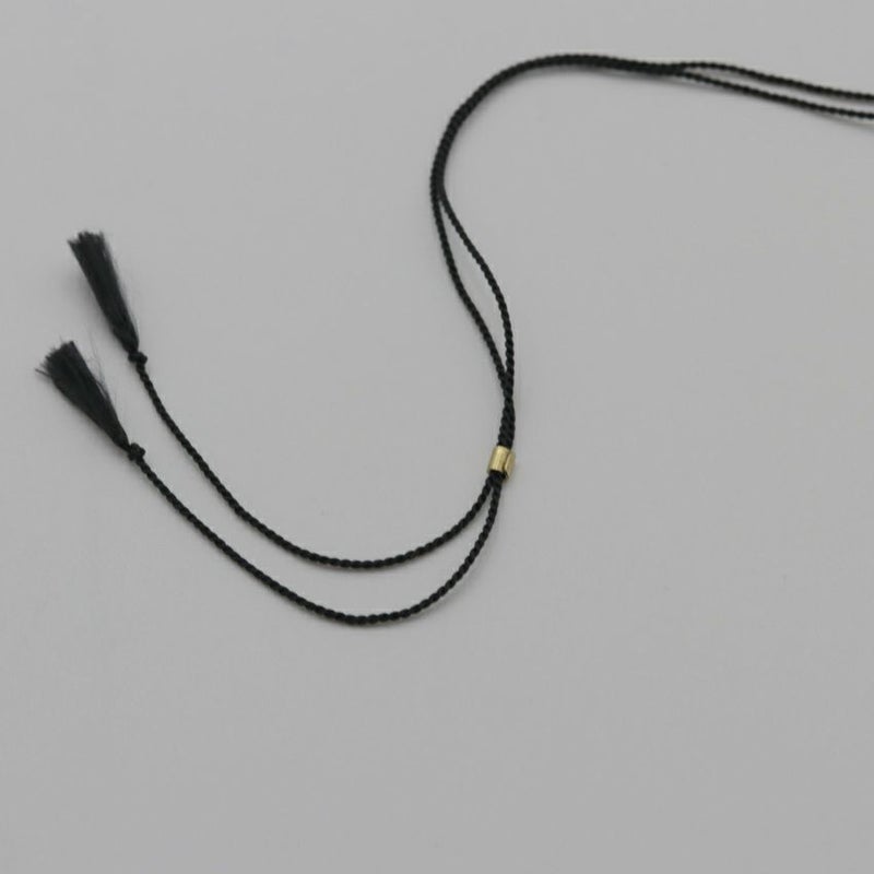 ブラック色のシルクコードにはにはシルバーに輝く3つのブラス製ビーズが、それぞれ施されています。