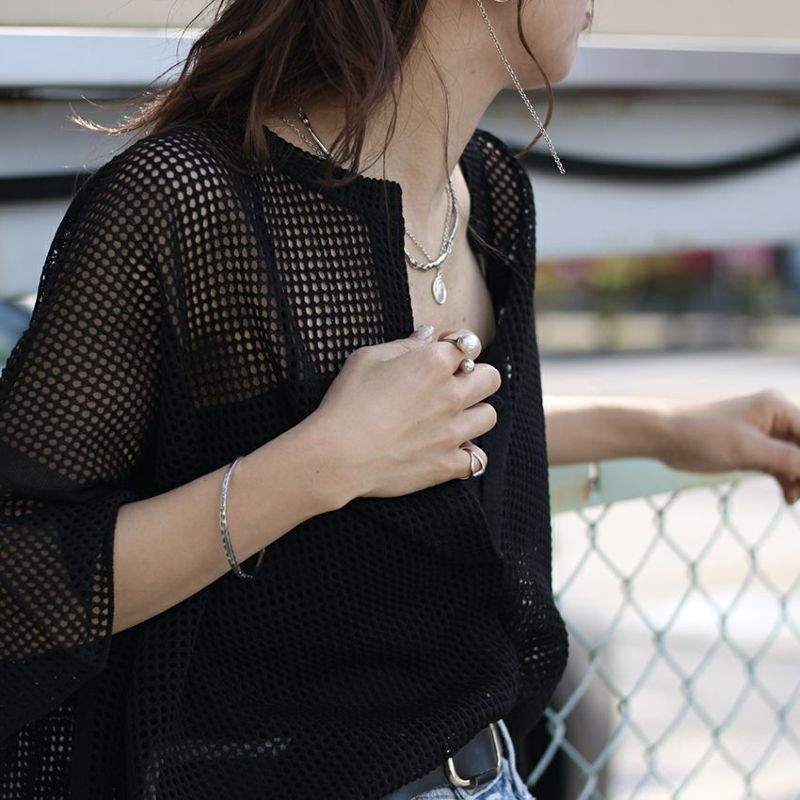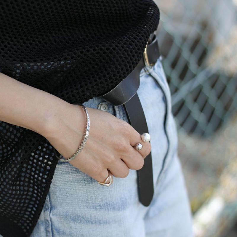 目を引くデザインですが華奢なので他のブレスレットと重ね付けしたり、コーディネートのアクセントとしてご使用頂けます。