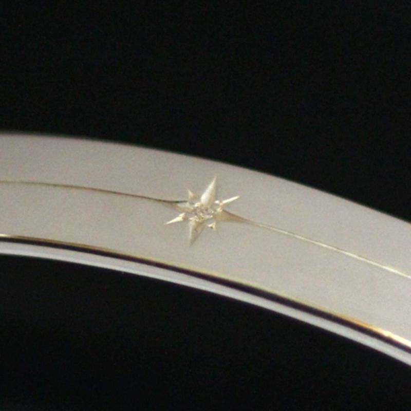 トップにダイヤモンドを彫り止めしたシルバー平打ちバングル