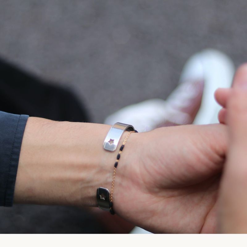 バングルエンドにはスターがカットアウトされ、サイドに施された2本のラインはケガキタガネを使い手作業で入れられる