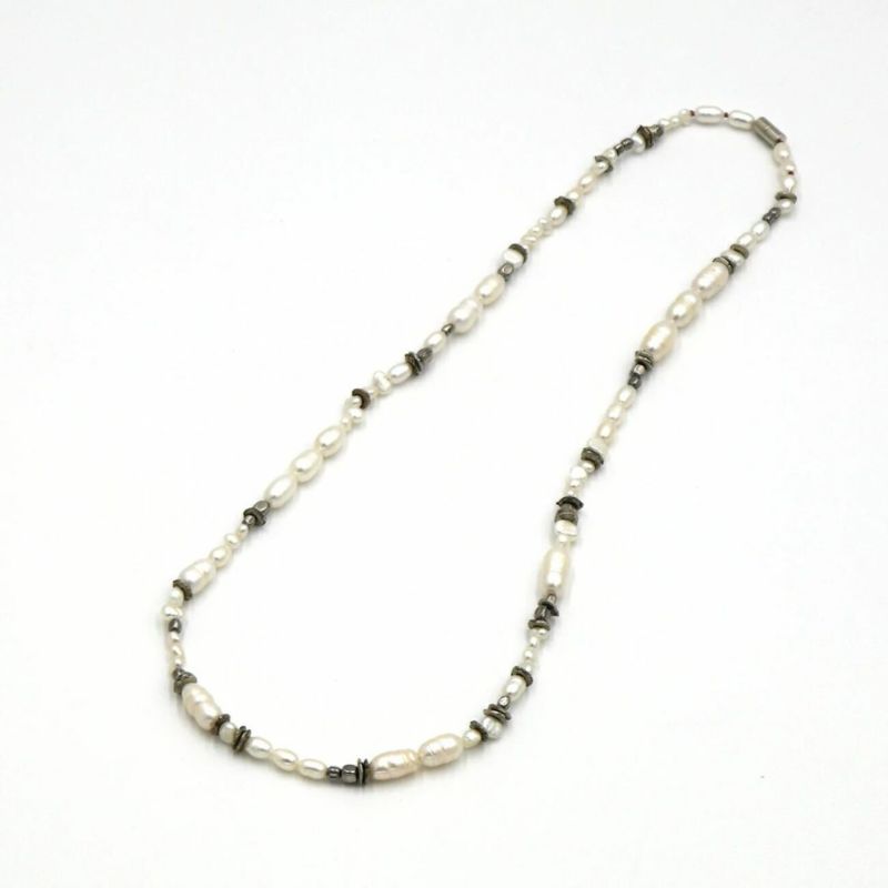 様々な形状の淡水真珠とメタルビーズを組み合わせた56cmロングクレイジーパールネックレス