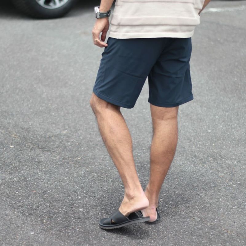 スラックスをベースとした大人らしい短パンのスタイルです。