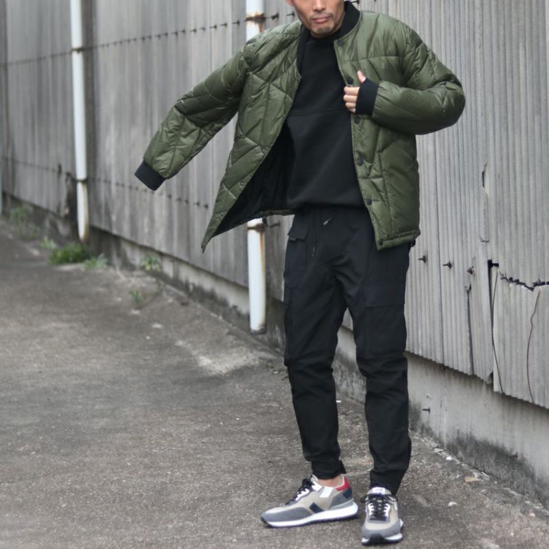 セットアップで合わせてブルゾンやダウンベストなどアウターとの相性も抜群です。