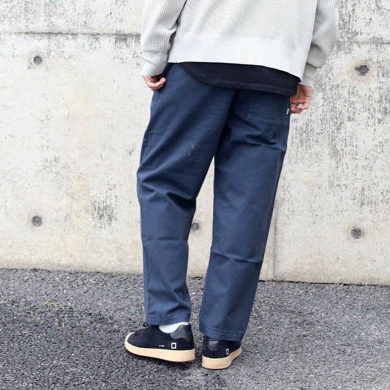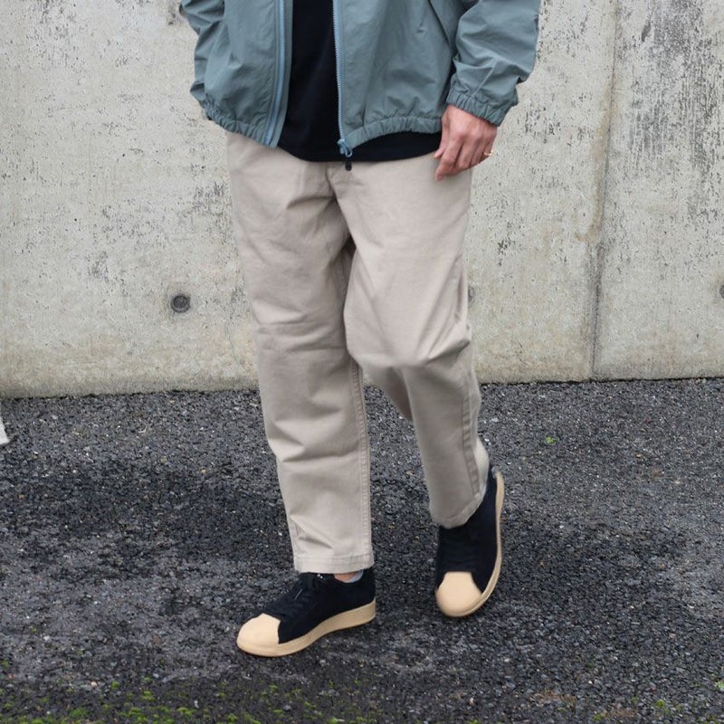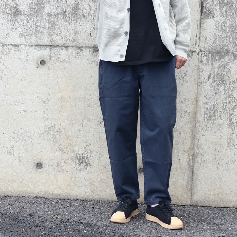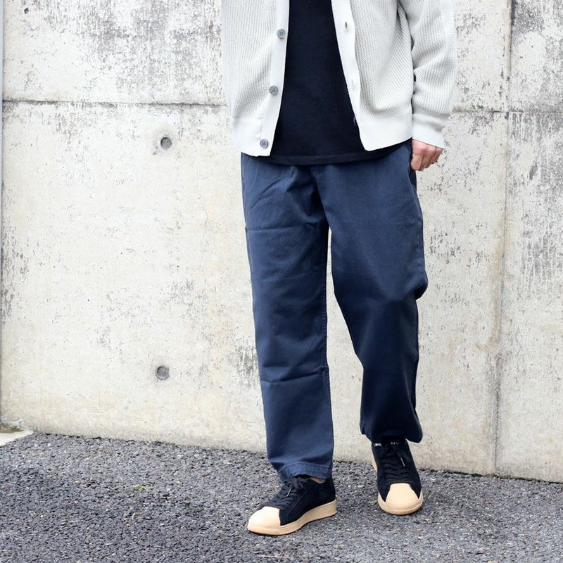 シルエットはワイドからやや強めのテーパードをかけ、丈感はジャストレングス。