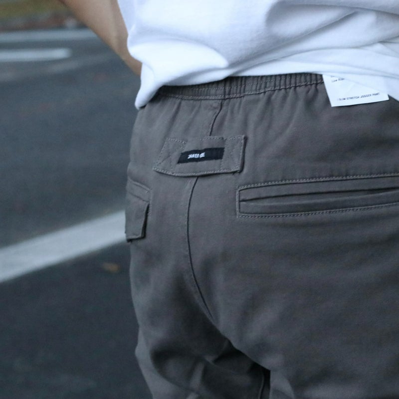 ゼインローブのジョガーパンツの魅力は、やはりピタッと細めのシルエットとジャストレングス
