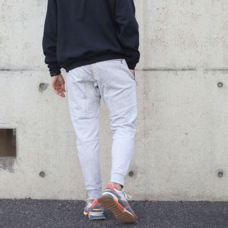 ノームコアがトレンドの昨今のファッションスタイルに合わせて爆発的人気となっているジョガーパンツをゼインローブ流に仕上げたのがこちらのスウェットジョガー。