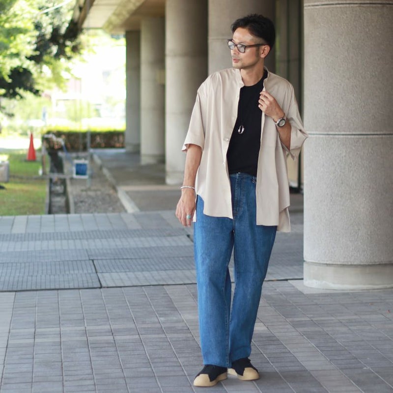 股上が深いので、ボトムスインした着こなしもオススメです。