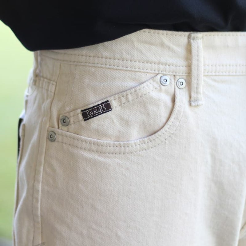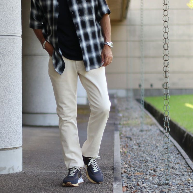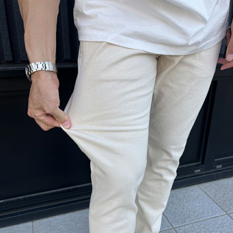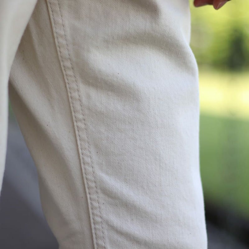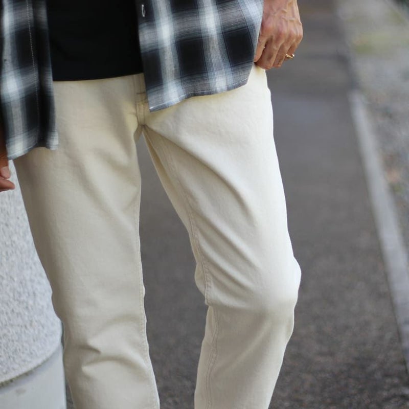 透け感の無いエクリュカラーは、ホワイトデニムを懸念される方でも履きやすい色合いになっています。