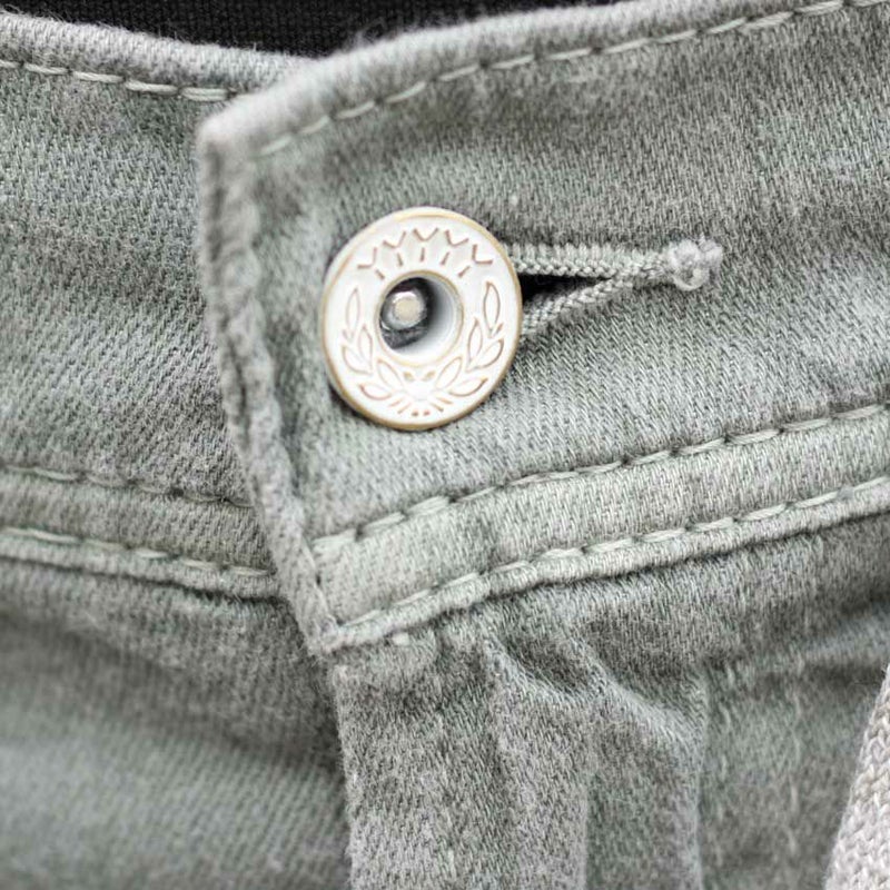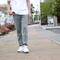 ホワイトの革ラベル・ボタンを採用し視覚的にも涼しげな印象を与えてくれてこの夏大変重宝いただけます。