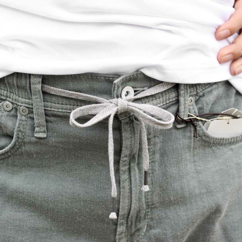 今までタイトになってしまっていたスポーツマン体型の方にもフィットし、このNewシルエットはウエストがゴムの為、サイズダウンし易く、落として穿くと今までのResort Jeansに似た雰囲気で穿く事が出来るハイブリッドシルエットです。