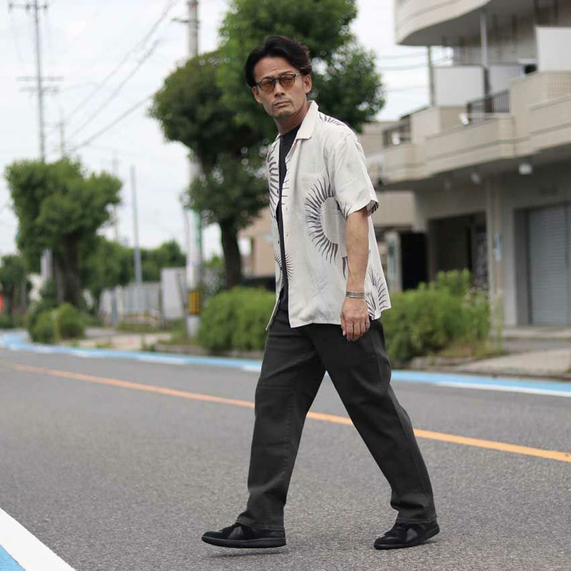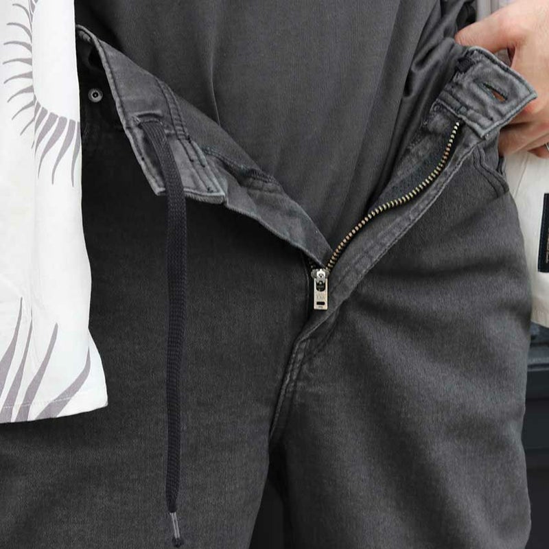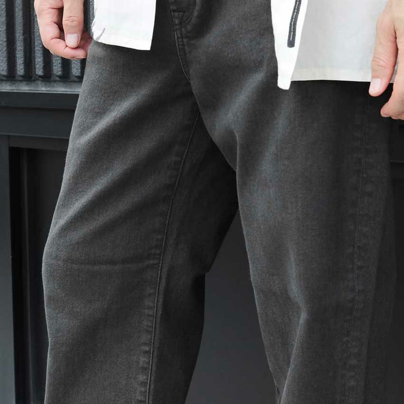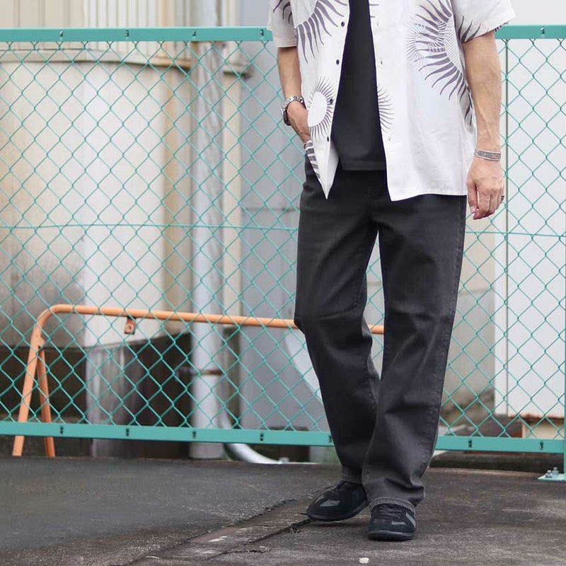 落ち着いた印象のフェードブラックでブルーワイドデニムとは違いカジュアル感を軽減させ、スタイリッシュで上品な印象で着用いただけます。
