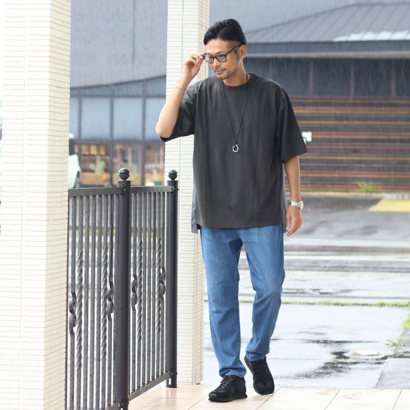 ブルーが強いインディゴカラーに、薄く抜けたあたり感が春夏デニムらしく、季節感のある着こなしに見せてくれます。