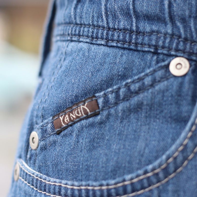 贅沢に4種の素材の良いとこ取りをして仕上げた8ozデニムで、麻には珍しい伸縮性も持たせています。