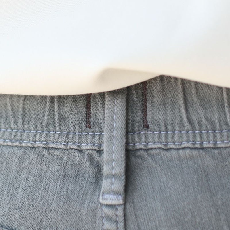 ウエストは通気性の良いメッシュゴムを一周施し、イージーパンツ仕様にすることでストレスフリーな履き心地に。