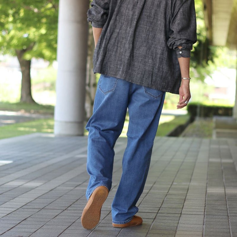 ゆるやかなバルーンラインが、一般的なカジュアルパンツとは一線を画す、洗練された“上品さ”を演出します。