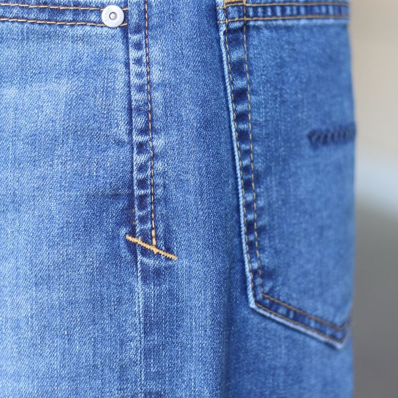 ヨコ糸に中空構造の糸を使うことで、通常の綿100%デニムと比べて驚きの約25%軽量化を実現。動きやすさはもちろん、長時間はいてもまったく疲れない心地よさにきっと驚くはず。