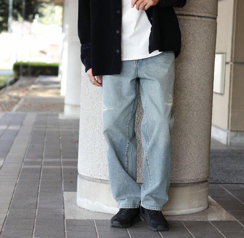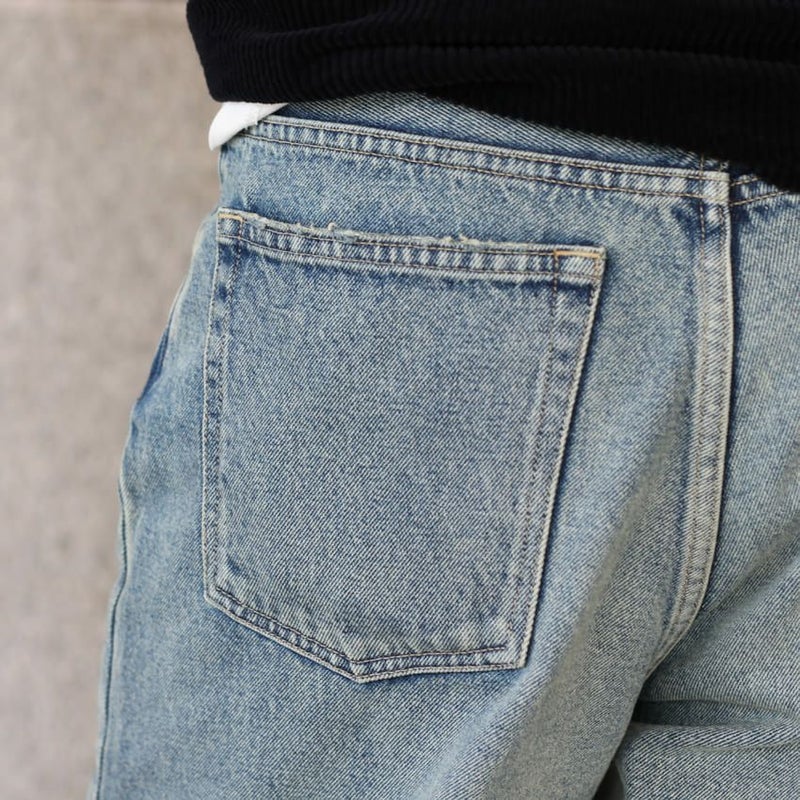 穿き込んだような雰囲気のある加工感や、黄ばみ加工を施したヴィンテージ感のあるデニムです。