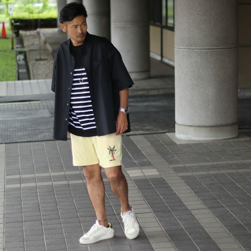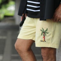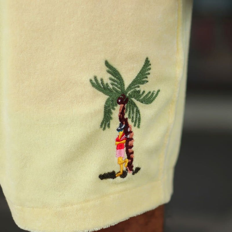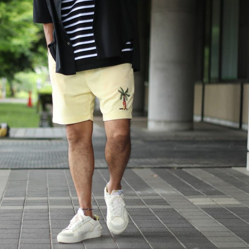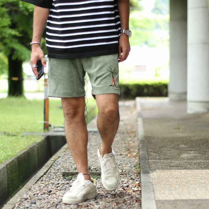 裾に施したトロピカルな刺繍がチルムードを高めるバミューダショーツ。