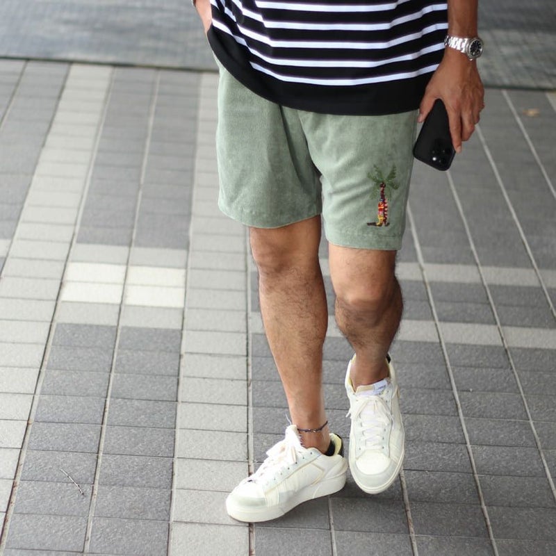 SCOTCH&SODA/スコッチアンドソーダ 裾ヤシの木パイルショーツ 292-72517 短パン ハーフパンツ 裏毛 南国 リゾート