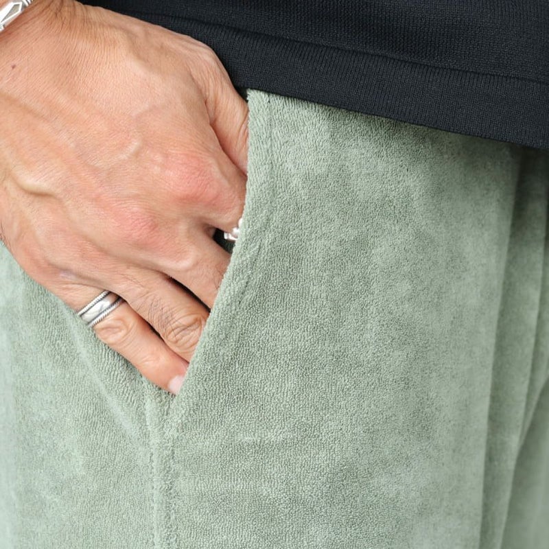 リラクシーな印象を与えるパイル生地を使用しており、ゆったりとしたシルエットで穿ける一本です。