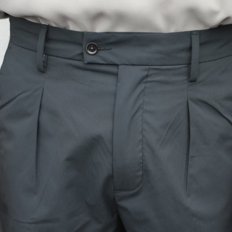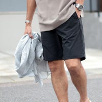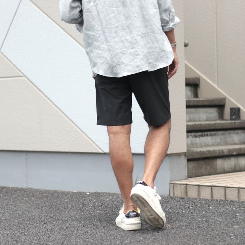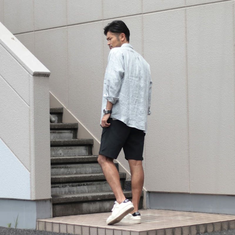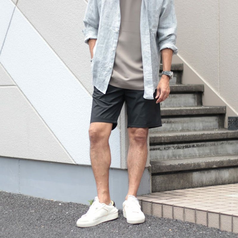 スラックスをベースとした大人らしい短パンのスタイルです。