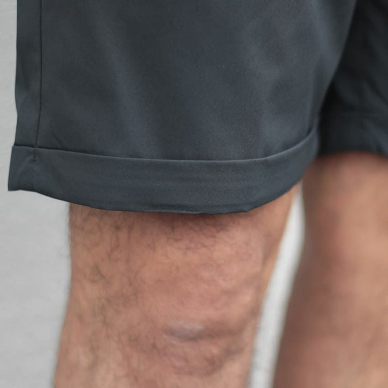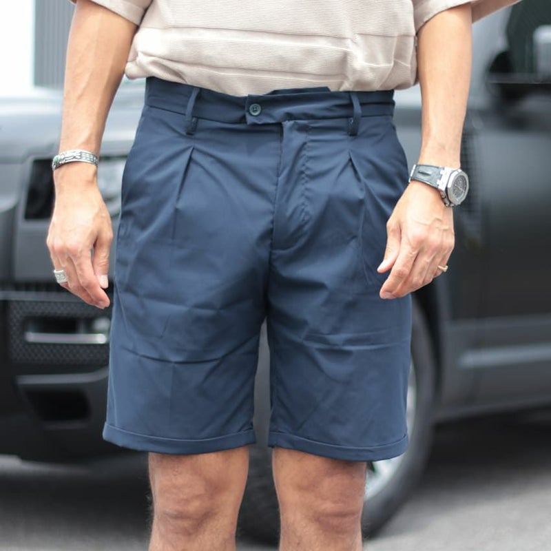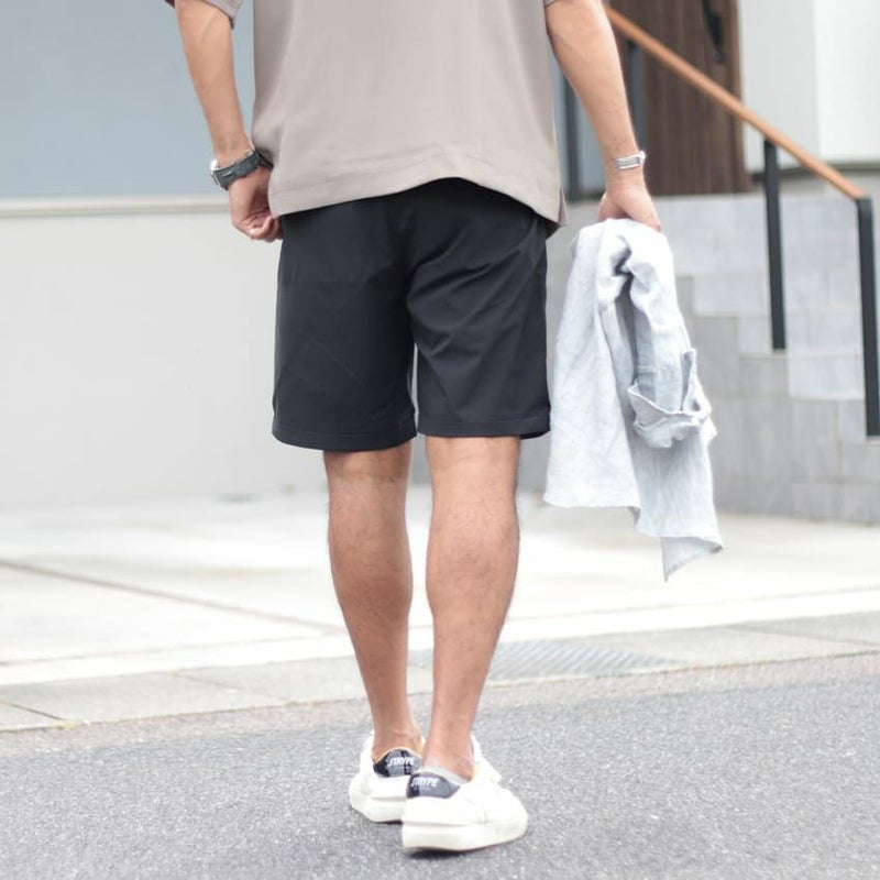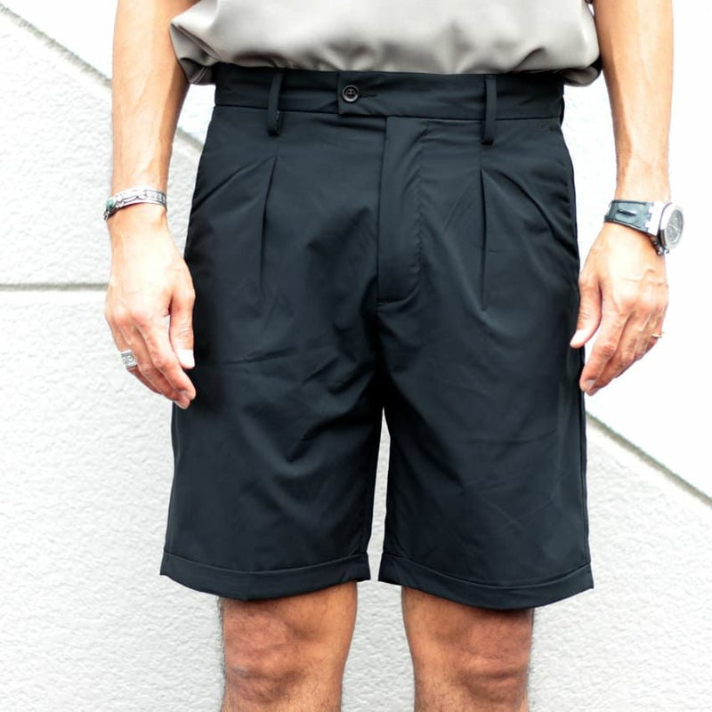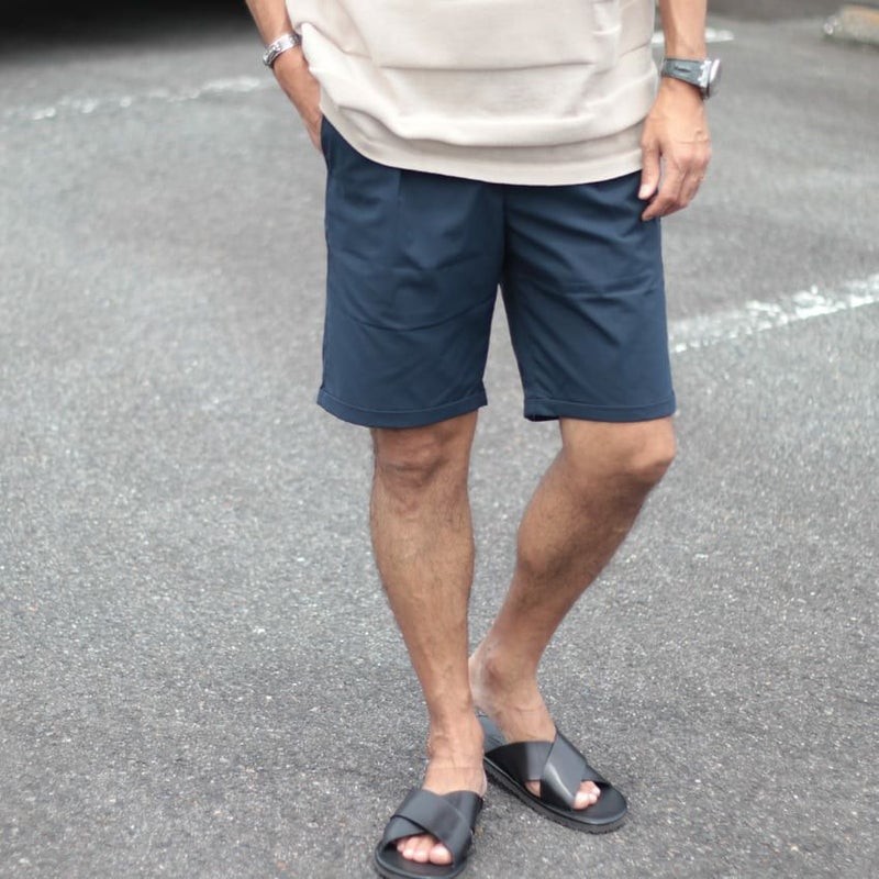 裾は折り返しがされ、タックを入れることで子供っぽく見えやすい短パンもより大人らしい印象に。