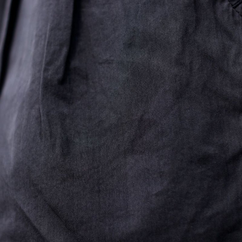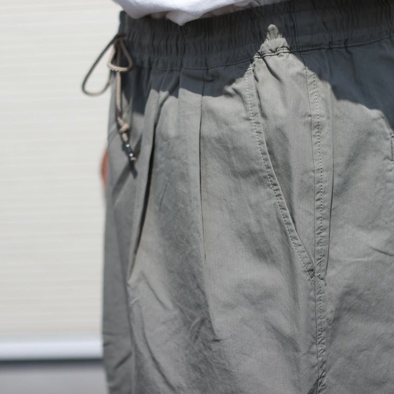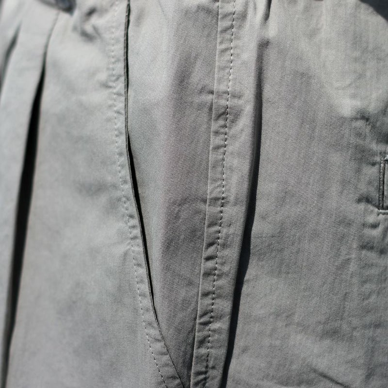フロントにタックを入れたワイドシルエットで、リラックス感がありつつも、ハリのある生地によりラフすぎない上品な仕上がり。