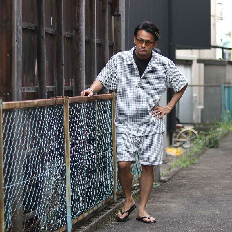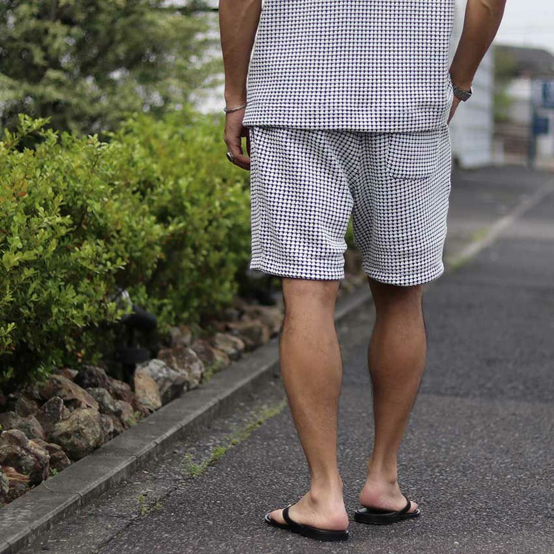 ラグジュアリーな休日ウェアを提案するSEAGREEN(シーグリーン)の、ブランドを代表するビッグワッフル素材のショートパンツ。