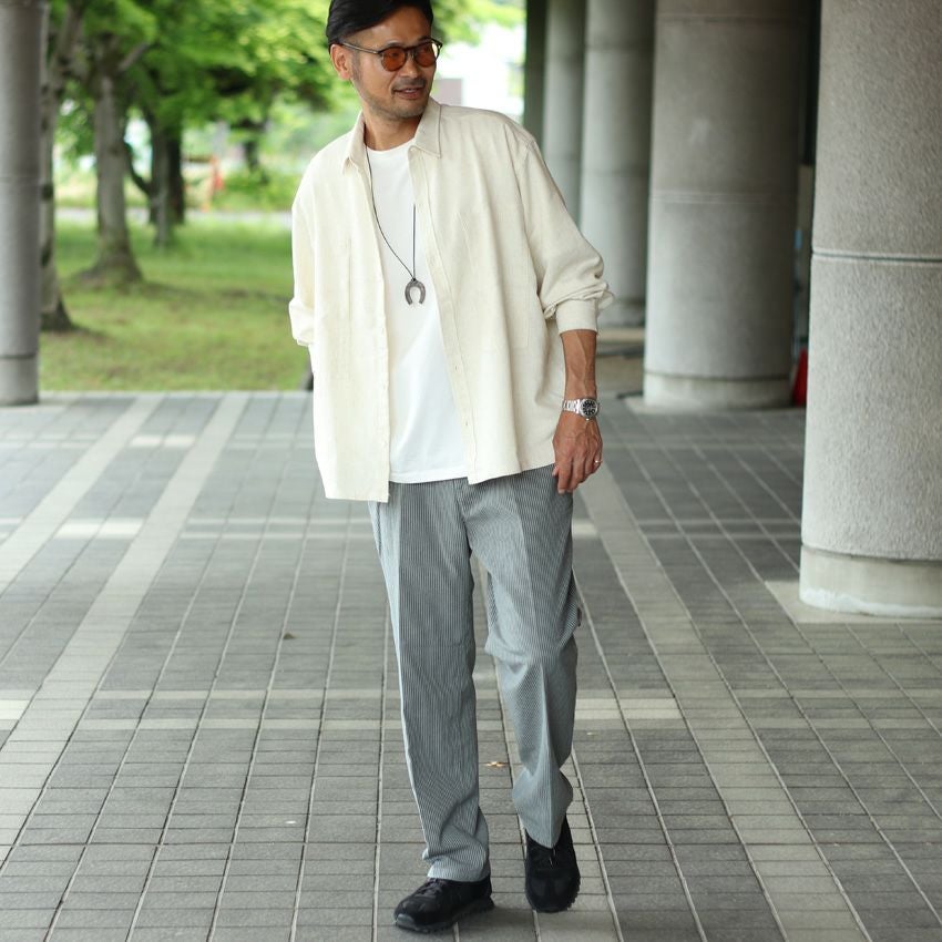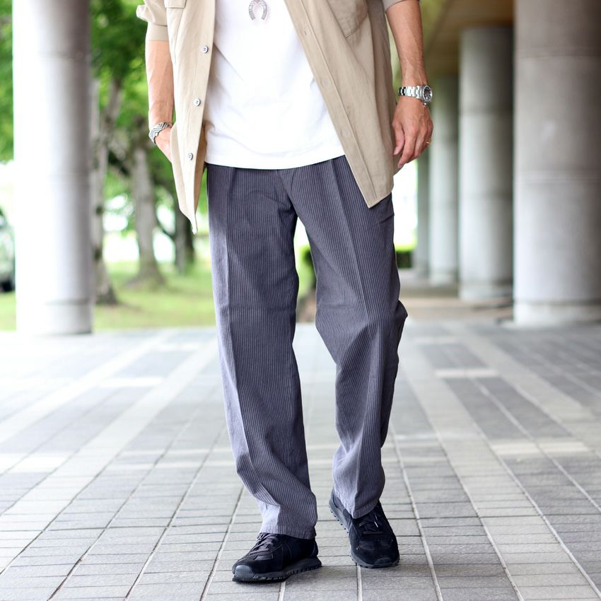 他の画像を見る JOHNBULL/ジョンブル ストライプオーバーダイワンタックイージーパンツ JM252P15 麻 ワイドパンツ ストレート セミワイド コットンリネン ¥ 22,000 税込 在庫切れ お気に入りに登録する