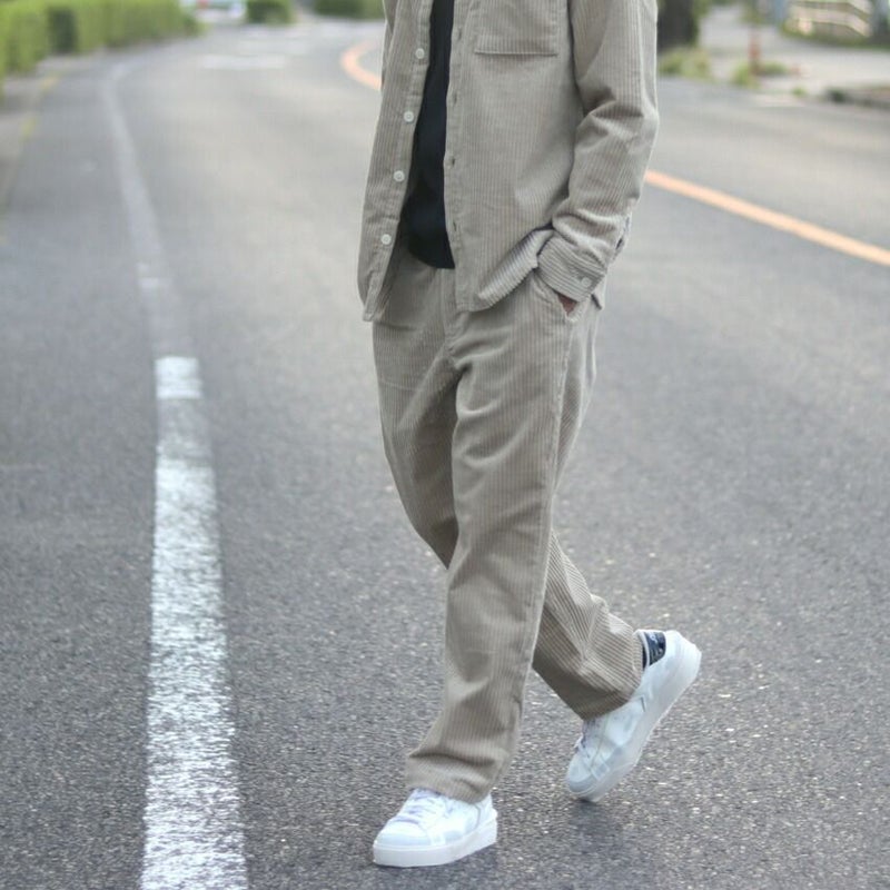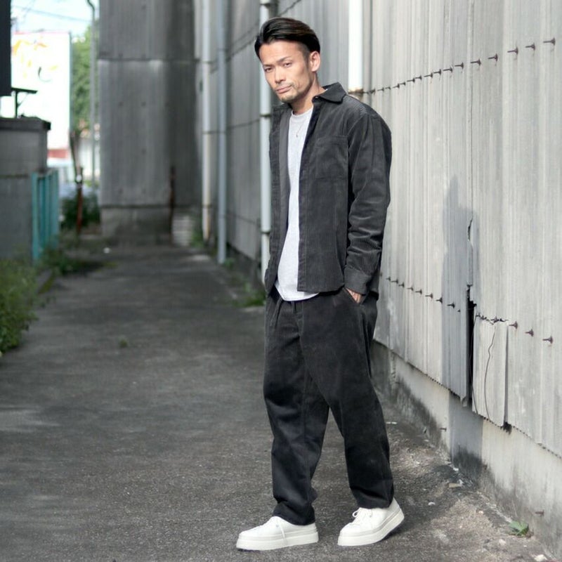 極太の凹凸感が特徴のストレッチコーデュロイ素材を使用。 ウォッシュ加工を施して絶妙なアタリ感がヴィンテージライクな表情です。