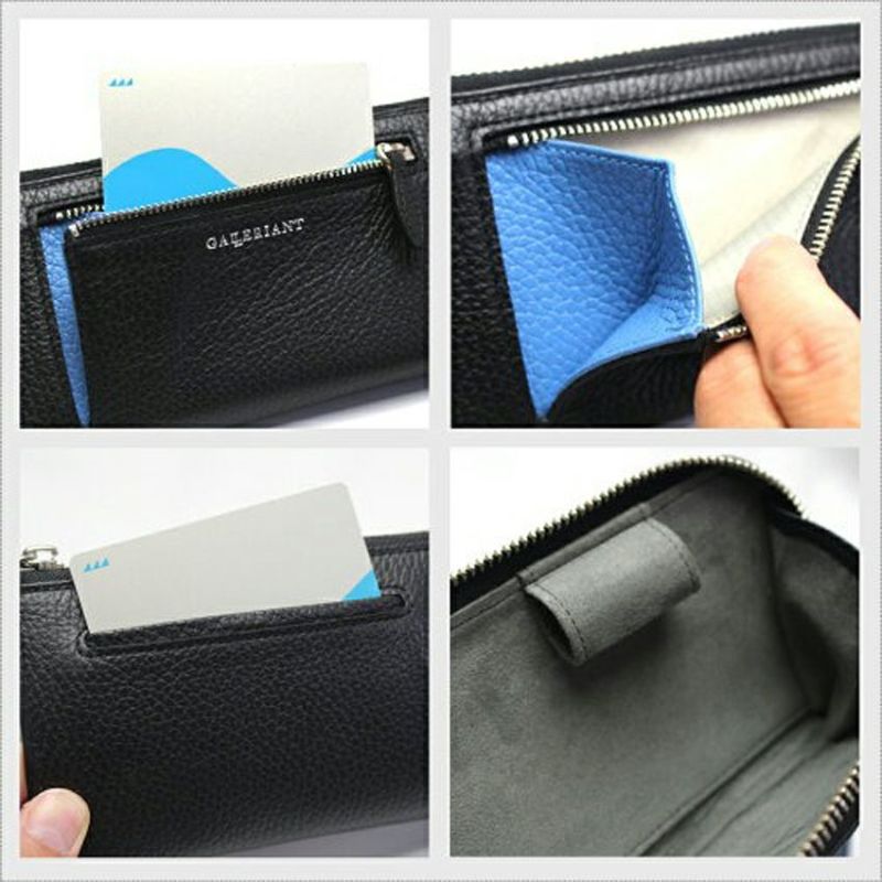 イタリア産ステアシュリンク革の独特な風合いであるもっちりとしたボリューム感を最大限に活かすよう肉厚に仕立て、そのコバ面は熟練職人の手により5回の磨き込み+コバ塗り作業を行い、ガレリアントこだわりの繊細で丸みのある美しいフォルムが手になじむ独特の触感に仕上げられています。