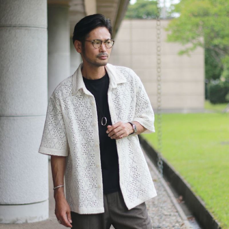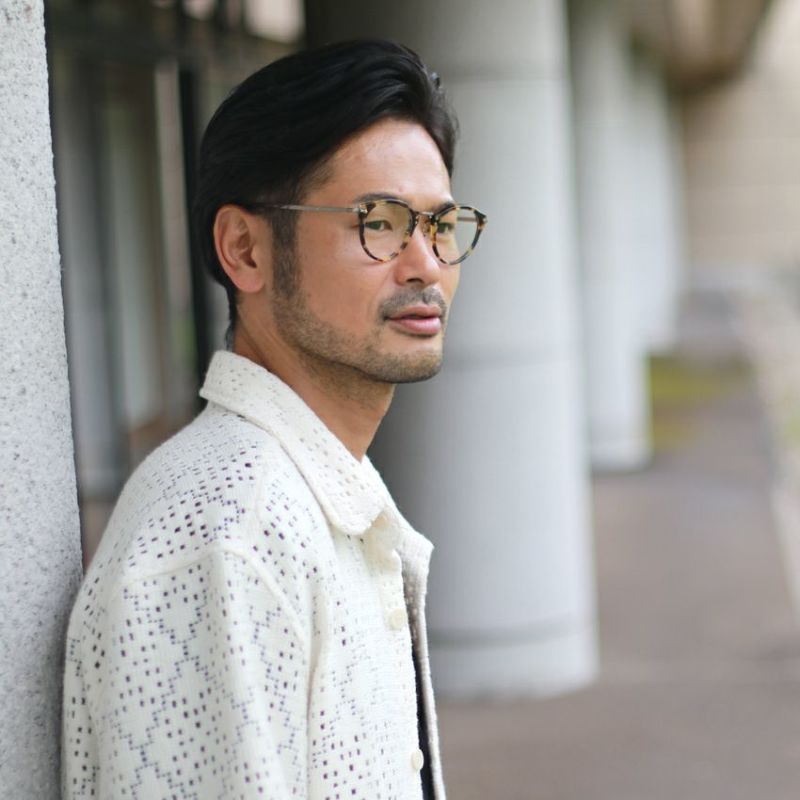 べっこうフレームの眼鏡はどんなコーディネートにも馴染みやすいのがポイント。