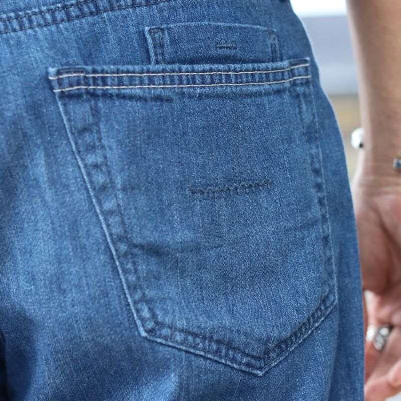 贅沢に4種の素材の良いとこ取りをして仕上げた8ozデニムで、麻には珍しい伸縮性も持たせています。