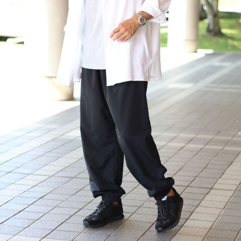 大人のための上質ナイロンワイドテーパードパンツ。