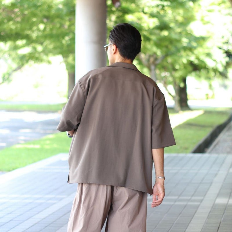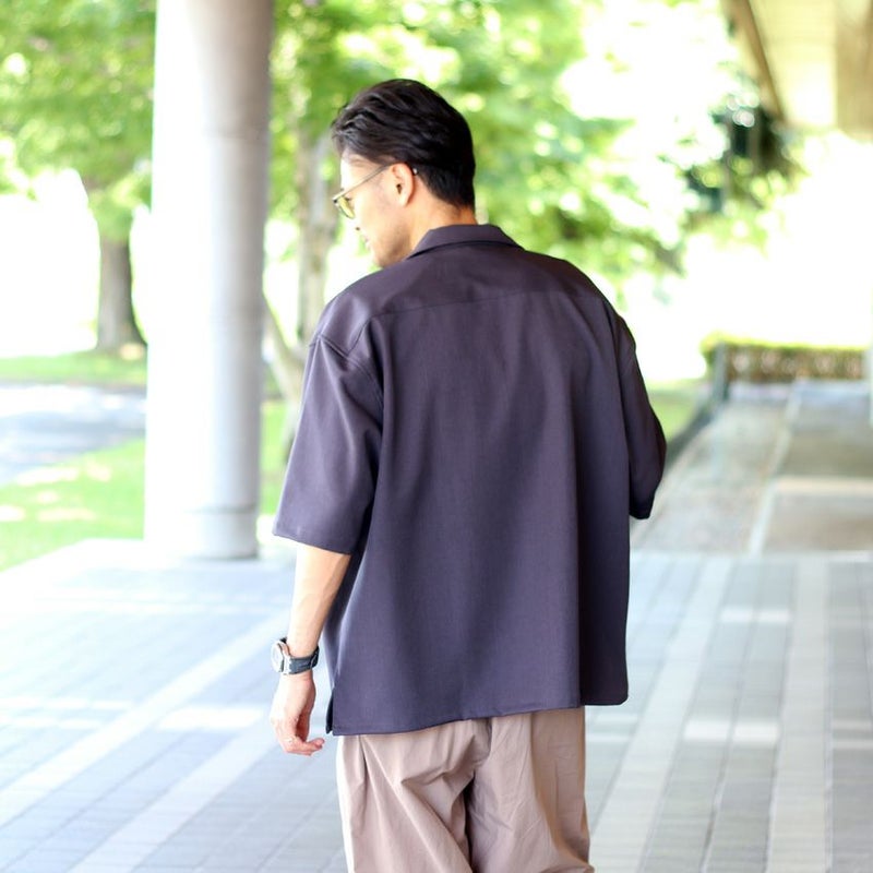 オープンカラーシャツは、小ぶりなボタンや表に出るステッチを極力省いた、ミニマルで洗練されたデザイン。