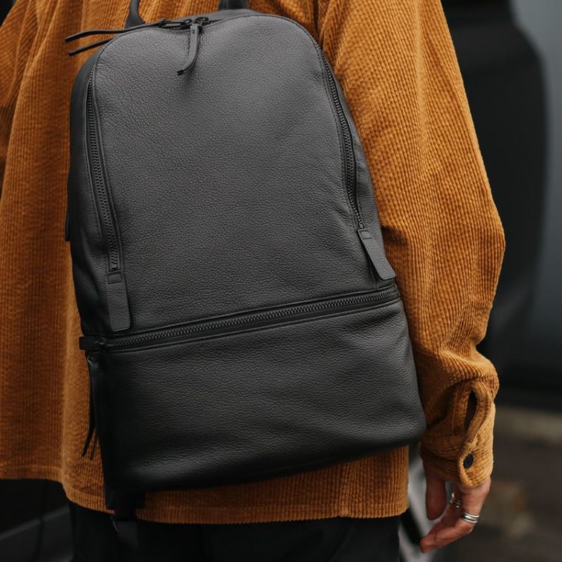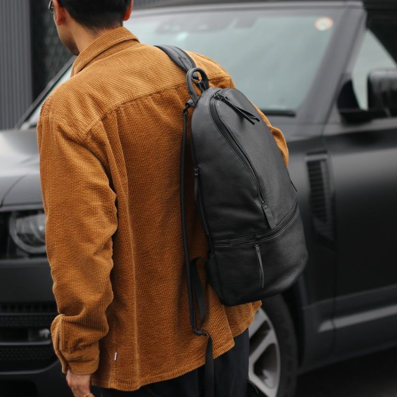 上質なレザーの質感と、無駄のないスマートなフォルムが魅力の大人のためのレザーデイパック。