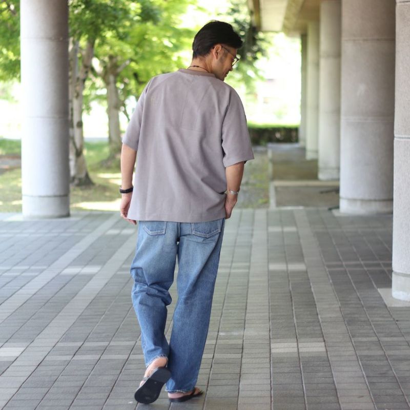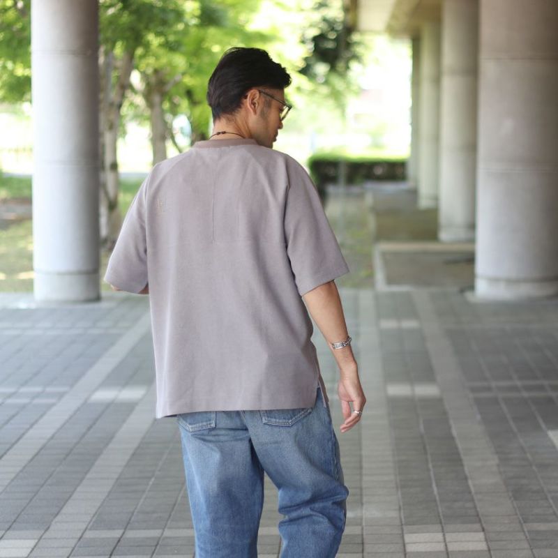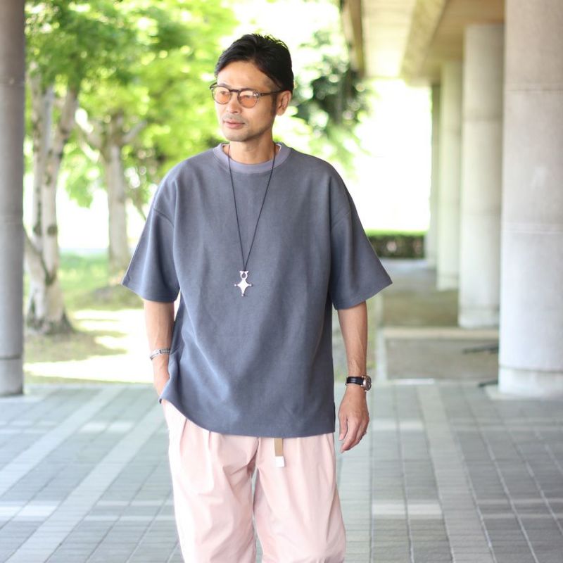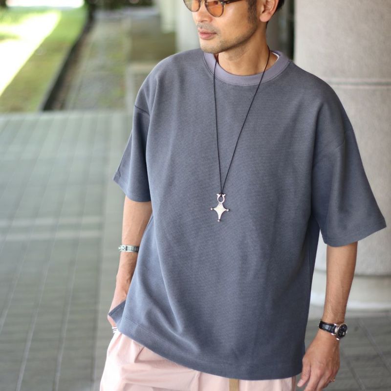 ワッフルのように肌触りで柔らかく、鹿の子のような表情の生地を使用したShunalオリジナルデザインのカットソー。